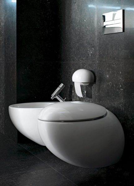 - Le bidet est adossé à un mur ou un muret qui cache un bâti-support adapté.