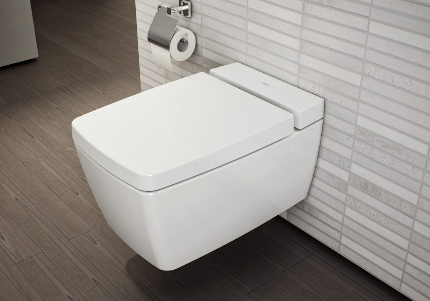 - Un WC suspendu est adossé à un mur ou muret qui cache un bâti-support comprenant l’évacuation et le réservoir.